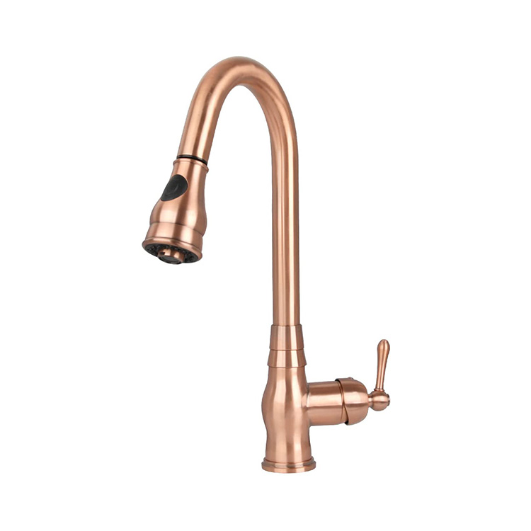 高級感のあるデザインの業務用アンティークキッチン混合栓 ローズゴールドのキッチン水栓